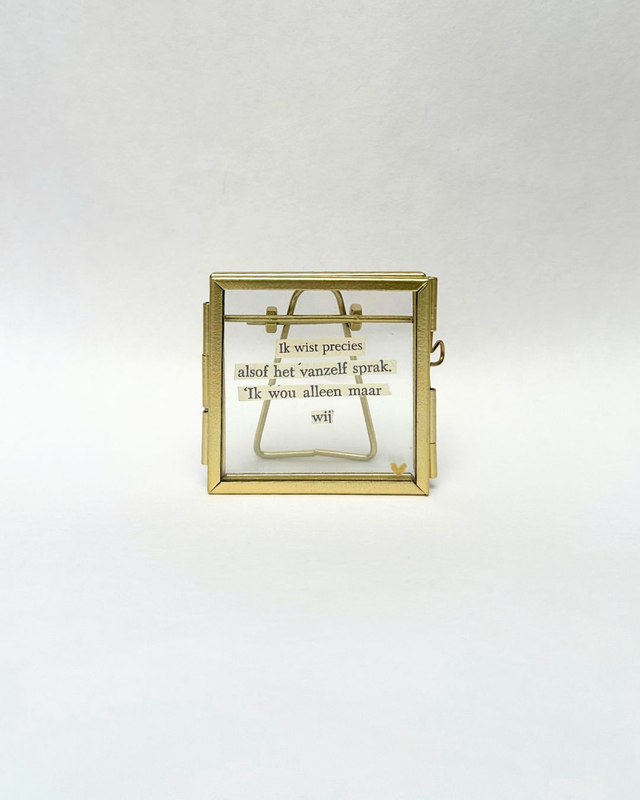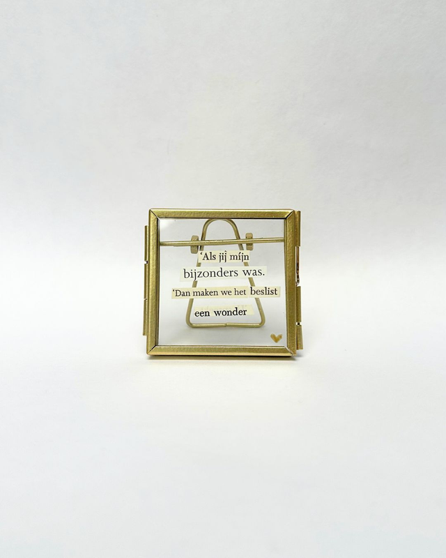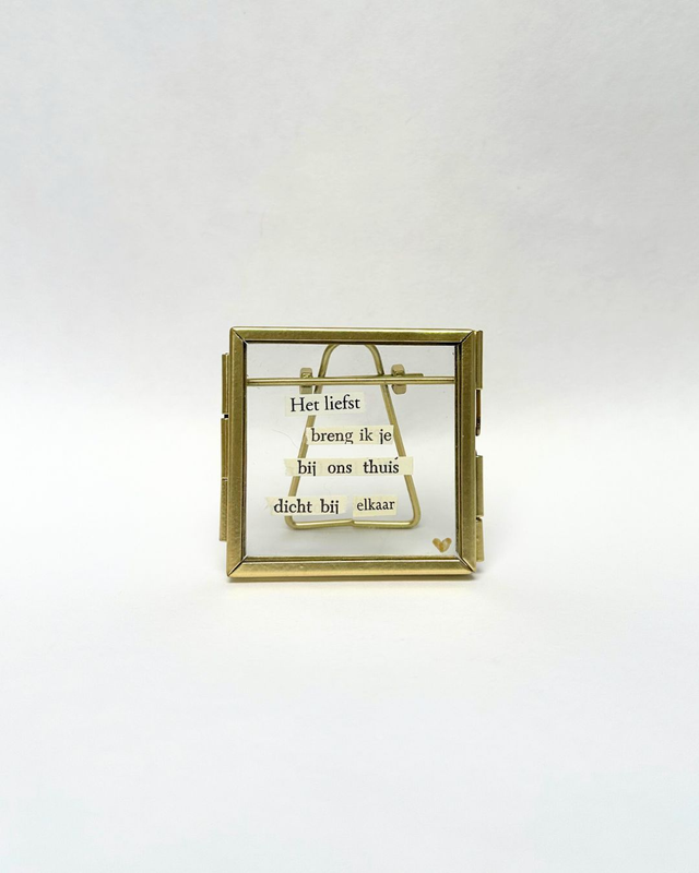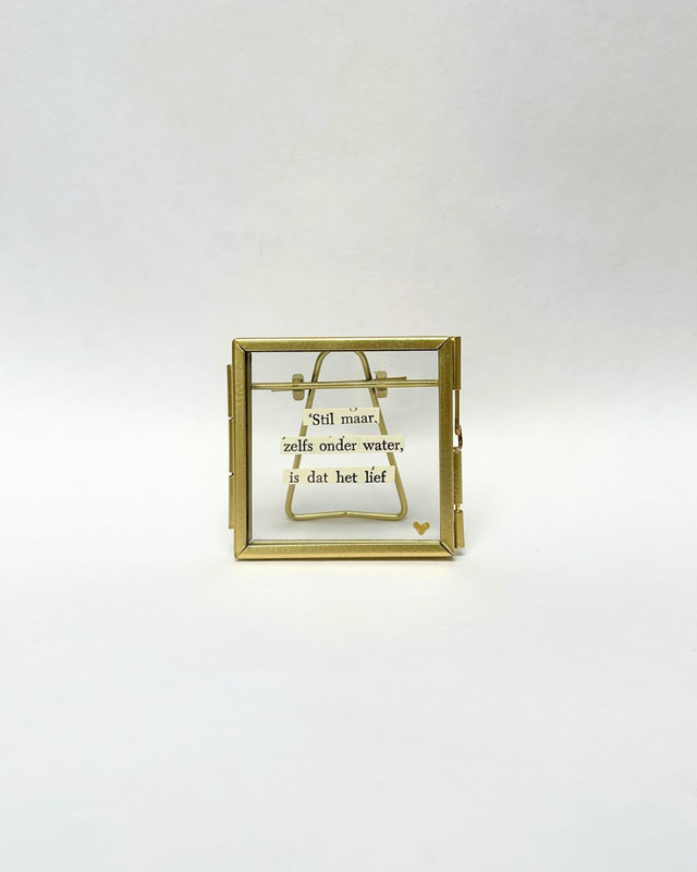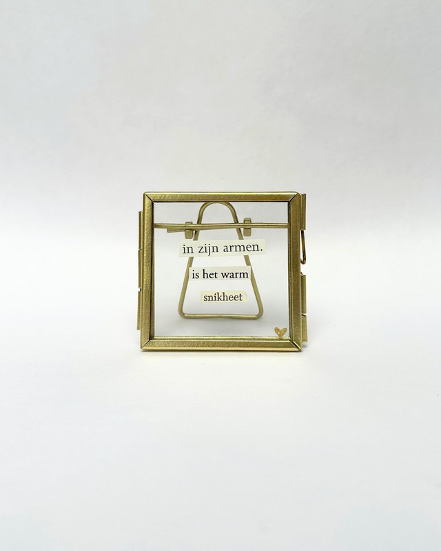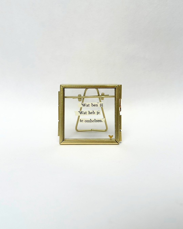 Snipper poëzie in een goud/brons-kleurig lijstje. Formaat 6x6cm.